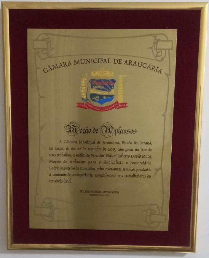 Em 2015, Laécio Monteiro recebeu da Câmara de Vereadores de Araucária a Moção de Aplausos em reconhecimento aos serviços prestados à comunidade.